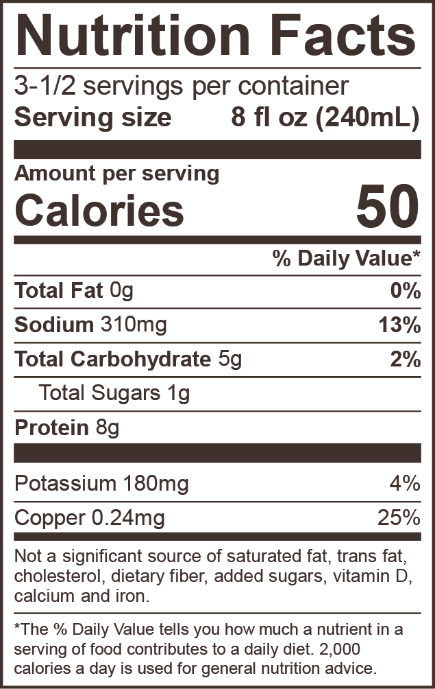 PURIFIED WATER, GRASS-FED BEEF BONES* OR FREE-RANGE CHICKEN BONES*, ONION*, CELERY*, CARROTS*, GARLIC*, OREGANO*, ANCIENT SEA SALT, APPLE CIDER VINEGAR*, ROSEMARY*, COCONUT AMINOS* (COCONUT BLOSSOM NECTAR*, WATER, APPLE CIDER VINEGAR*, SEA SALT), WHITE PEPPER*, BLACK PEPPER*, CINNAMON*, TAMARIND*, BAY LEAF*.